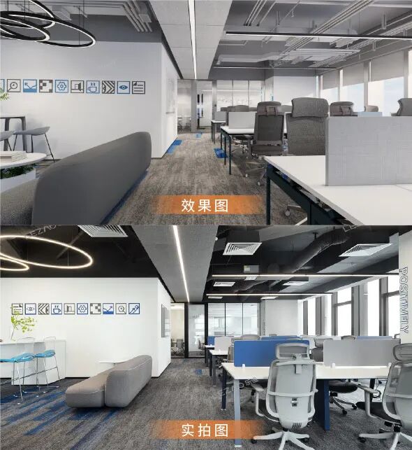 LEZAO乐造样板间即可交付场景,在办公空间设计阶段用户便可以通过VR以可预见式的沉浸式体验看到未来交付的场景效果,最终落地效果还原设计效果达95%以上,所见即所得。