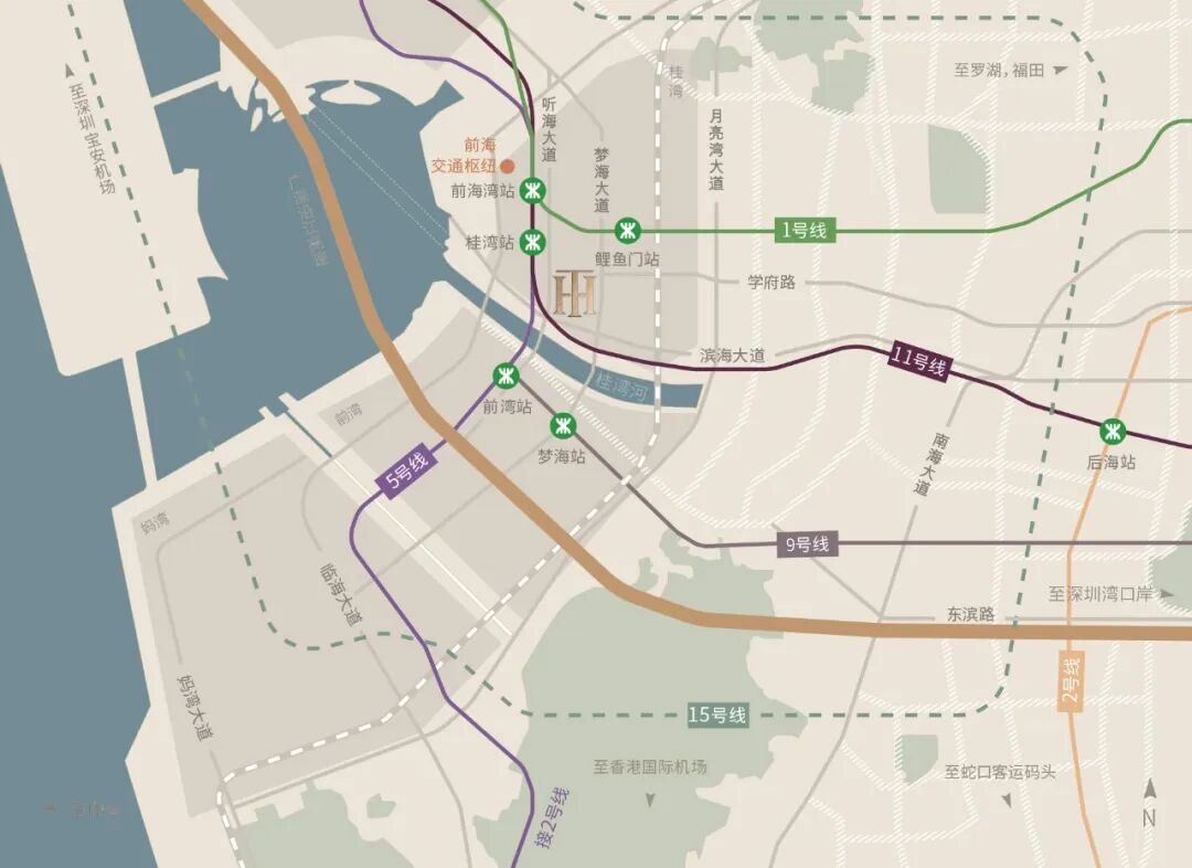 ◾文化生活市政配套:桂湾河公园、桂湾河水廊道公园、前海体育公园、前海石公园、前海会议中心金融博物馆改革、开放博物馆、科技专题馆、知识产权法庭