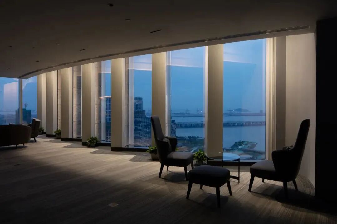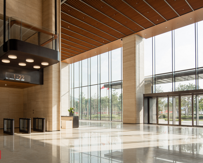弘毅大厦以前海罕见的独特大堂设计,营造出尊贵的酒店式大堂感受。高达120m挑空巨幅水幕气势澎湃,聚水生财;约11m三层挑高,尽显精致国际风范。