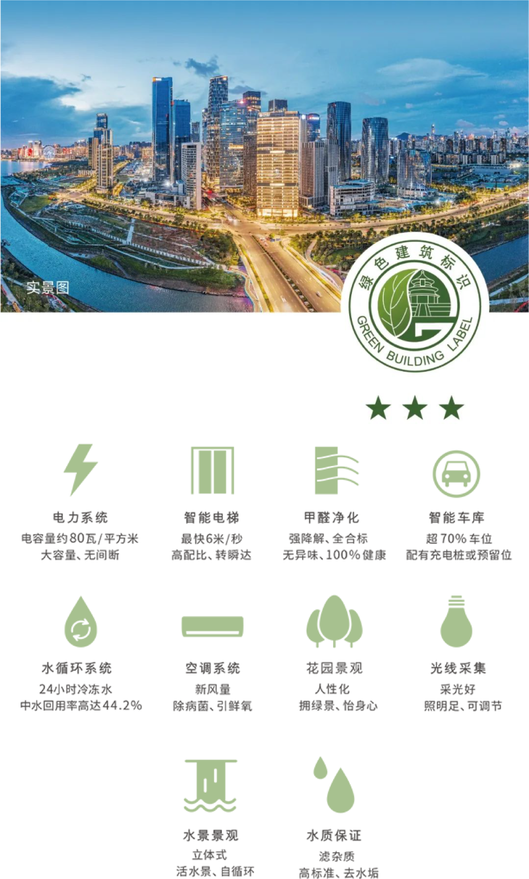 荣获国家“绿色建筑三星”认证,将健康、人性化的商务理念,融入环境,缔造舒适生态的办公场域。